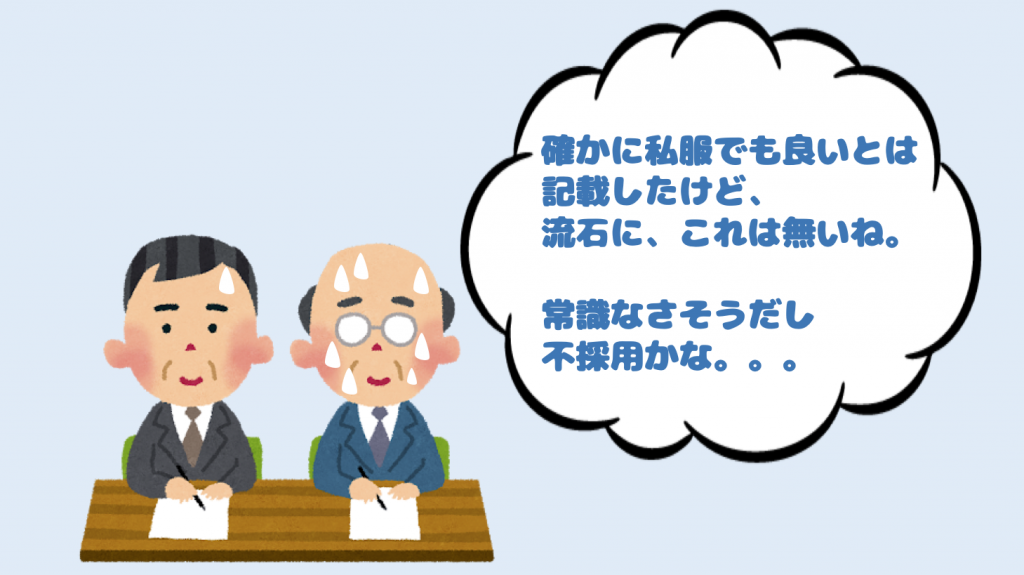私服はNGである理由と、気を付けるべきポイントでした。